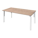 Mesa de reunión con estructura de melamina ideal para reunirse con varios integrantes en una sola mesa. Encimera de melamina de 25mm de grosor con canto de 2mm de grosor. Estructura panel de 25mm de grosor con canto de 2mm del mismo color y faldón en melamina de 19mm de grosor. Se incluye sistema de regulación independiente de hasta 2cm, realizado en plancha metálica plegada y pintada en epoxy RAL 9006. Medidas: 220x100cm., altura total: 72cm.
