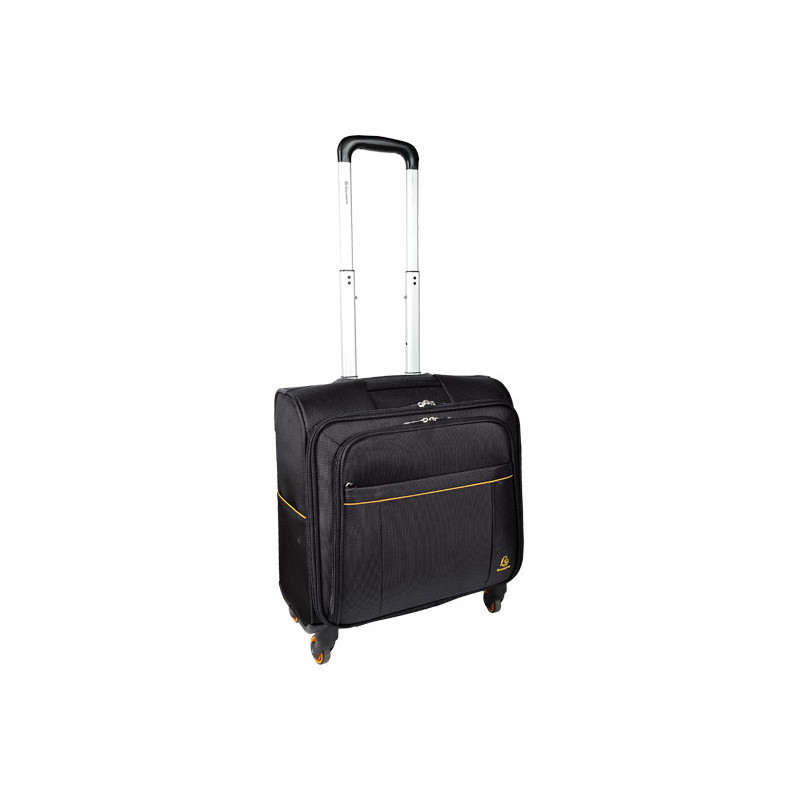 Maletín trolley con ruedas. Para ordenador portátil de hasta 15,6". Dimensiones: 44 x 38 x 25,5 cm. En poliéster. Con estuche enrollable con mango telescópico. Cuatro compartimentos separados para almacenar y organizar el portátil, los archivos, la ropa y los accesorios. El compartimiento del portátil puede cerrarse con seguridad con una cerradura de combinación TSA de 3 dígitos. Aceptado como equipaje de cabina por la mayoría de las líneas aéreas. Posibilidad de cargar fácilmente un teléfono o una Tablet con sus puertos USB y cables integrados en el interior del equipaje (2 puertos USB y un puerto micro-USB integrados, cargador autónomo Powerbank no incluido).