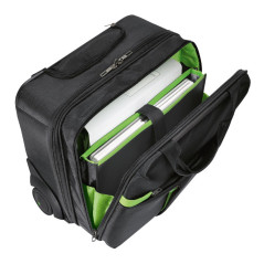 Maletín trolley con ruedas. Para ordenador portátil de hasta 15,6". Dimensiones: 44 x 38 x 25,5 cm. En poliéster. Con estuche enrollable con mango telescópico. Cuatro compartimentos separados para almacenar y organizar el portátil, los archivos, la ropa y los accesorios. El compartimiento del portátil puede cerrarse con seguridad con una cerradura de combinación TSA de 3 dígitos. Aceptado como equipaje de cabina por la mayoría de las líneas aéreas. Posibilidad de cargar fácilmente un teléfono o una Tablet con sus puertos USB y cables integrados en el interior del equipaje (2 puertos USB y un puerto micro-USB integrados, cargador autónomo Powerbank no incluido).