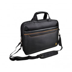 Bolso ligero y resistente de dimensiones 41 x 30 x 4 cm para ordenadores portátiles hasta 15,6", asa ajustable y extraíble. Gran bolsillo con cierre ZIP en la parte frontal con numerosos compartimientos. Interior de tela y con relleno para una mejor protección del ordenador; exterior en poliéster resistente e impermeable. Una cinta en la parte trasera permite poner la bandolera en una asa telescópica de otra maleta de mayor tamaño para un transporte más cómodo; garantía de 2 años.