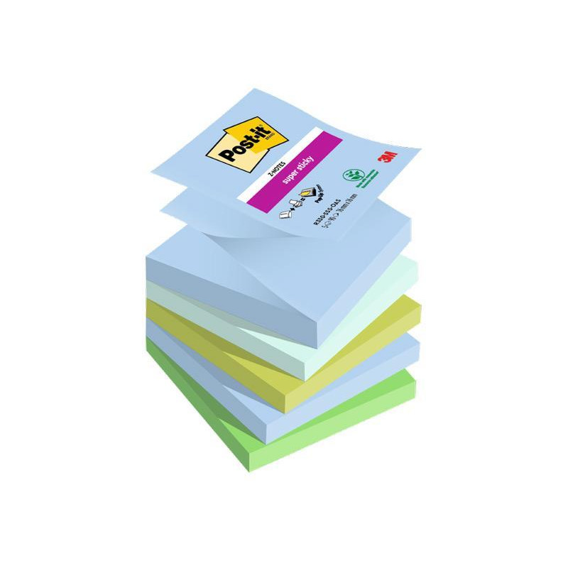 Las Z-Notas Post-it® Super Sticky permanecen pegadas más firmes y por mucho más tiempo que la mayoría de las notas adhesivas. Con formato de zigzag de despegue a mano, nuestras notas son perfectas para superficies verticales. Retira una nota con una mano mientras tienes la otra libre. Hacen tu trabajo efectivo y simplifican tu vida diaria. Son fuertes, versátiles y llamativas. Las Z-Notas Post-it® están fabricadas 100% con fibras de papel certificadas por PEFC. Al retirarlas no dejan residuos.