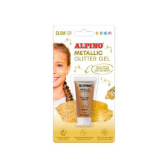 Expositor con 24 unidades de maquillaje en formato gel brillante de colores metalizados, con purpurina. Y con 12 unidades de gel de maquillaje transparente con purpurina. Para dar un toque brillante. Ambos indicados para rostro y cuerpo. No necesita base y es libre de parabenos. Se lava con agua y jabón. Botes de 14ml.