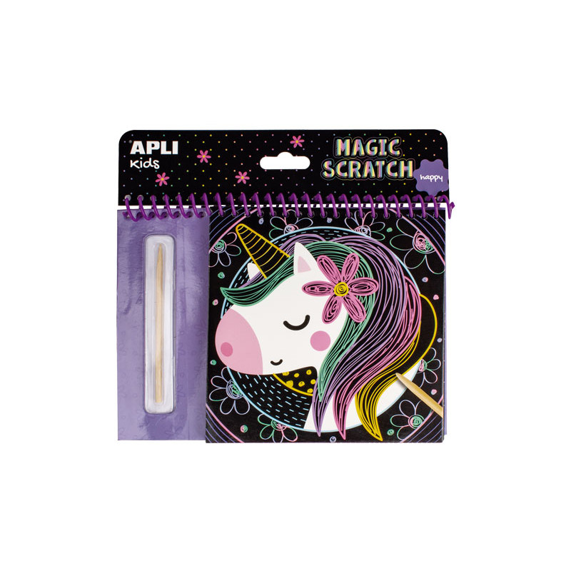 • BLOC DE 8 LÁMINAS APLI KIDS "MAGIC SCRATCH: HAPPY"