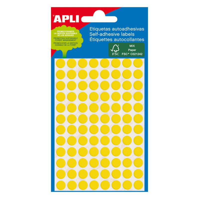 Etiquetas circulares de tamaño Ø 8,0 mm, con adhesivo permanente. Pack con 3 hojas (288 etiquetas). Etiquetado rápido y efectivo sin necesidad de pasar por la impresora. Las etiquetas ideales para escribir sobre ellas con lápiz, bolígrafo (incluso tinta gel) o rotulador permitiendo un rápido secado de la tinta. Aptas para escritura manual.