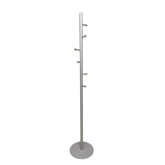 Perchero de pie metálico con 6 colgadores de ABS en diferentes alturas. Base resistente y de gran estabilidad. Medidas: ø 36cm de base y 181cm de altura.