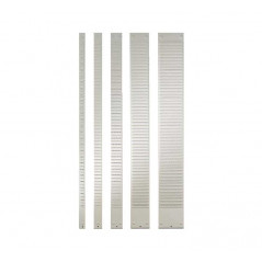 Se puede utilizar con fichas T y con accesorios magnéticos. En lámina de acero ligera e indeformable. Existen 4 medidas en amplitud (índices) y 3 en altura (número de ranuras).
