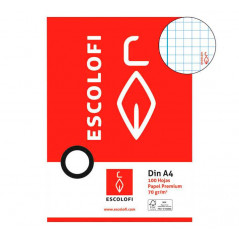 Resmillería de 500 hojas de 70 gr. Formato A4 sin taladros. Rayado: 4x4 sin margen.