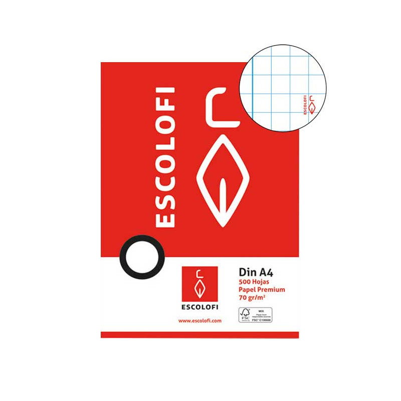 Resmillería de 500 hojas de 70 gr. Formato A4 con 4 taladros. Rayado: milimetrado 2x8x4 (Séyès).