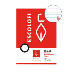 Resmillería de 500 hojas de 70 gr. Formato A4 sin taladros. Rayado: Pauta 3,5 con margen.