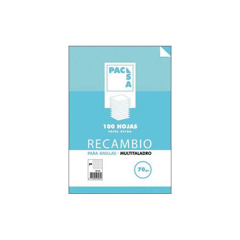 Resmillería de 500 hojas de 70 gr. Formato A4 con 2 taladros. Rayado: Pauta 2,5 con margen.