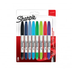 Blíster de 28 marcadores de punta redonda. Escritura permanente en todas las superficies. Secado rápido y resistente al agua. Punta fina de 0,9 mm.