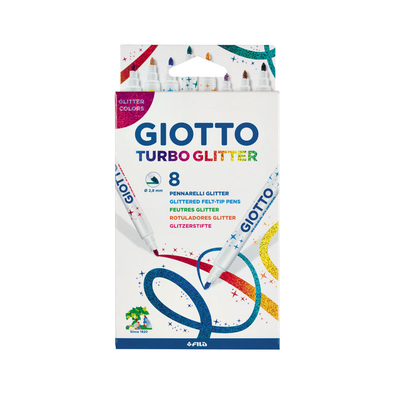 Deja que tu creatividad destelle con los rotuladores Giotto Turbo Glitter. Prácticos, divertidos y originales, son perfectos para decorar cartas de felicitación, personalizar tu diario o añadir un toque original a tu día a día. La tinta especial glitter en 8 colores diferentes está pensada para talentos creativos que quieren dar a sus obras un toque chispeante. Giotto Turbo Glitter tiene un capuchón especial anti-ahogo y punta de fibra bloqueada que no se hunde, así puedes dar rienda suelta a tu imaginación de la forma más segura.