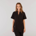 Blusa de mujer tipo carcasa de manga corta, con aberturas laterales. Moderno cuello chimenea y cierre frontal con cremallera. La prenda de estilo semi ajustada, cuenta con costadillos en el delantero y pinzas en la espalda para un ajuste perfecto. Fabricado con microfibra 360, 95% poliéster y 5% elastano. Tejido con tratamiento antibacteriano SILVADUR que aporta frescura y protección. Su propiedad elástica 360 permite una libertad de movimiento excepcional. Ideal para profesionales de la salud en hospitales, clínicas, centros médicos, farmacias, veterinarias, estética, spa, limpieza y comercios. * Las medidas son orientativas y pueden variar en unos pocos cm. Las medidas de pecho, cintura y cadera indicadas en la imagen corresponden a los cm. de la prenda sobre una superficie plana, para determinar el contorno aproximado se debería multiplicar la medida x2.