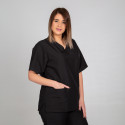 Blusa de mujer tipo carcasa de manga corta, con aberturas laterales. Moderno cuello chimenea y cierre frontal con cremallera. La prenda de estilo semi ajustada, cuenta con costadillos en el delantero y pinzas en la espalda para un ajuste perfecto. Fabricado con microfibra 360, 95% poliéster y 5% elastano. Tejido con tratamiento antibacteriano SILVADUR que aporta frescura y protección. Su propiedad elástica 360 permite una libertad de movimiento excepcional. Ideal para profesionales de la salud en hospitales, clínicas, centros médicos, farmacias, veterinarias, estética, spa, limpieza y comercios. * Las medidas son orientativas y pueden variar en unos pocos cm. Las medidas de pecho, cintura y cadera indicadas en la imagen corresponden a los cm. de la prenda sobre una superficie plana, para determinar el contorno aproximado se debería multiplicar la medida x2.