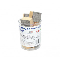Sellos creados para premiar el trabajo bien hecho o incentivar la realización de un trabajo mejor. Se suministran en bote de plástico reutilizable como recipiente. Fabricados en caucho y madera. Ideales para la motivación de los más pequeños. Tamaño: 3x3,5 cm.