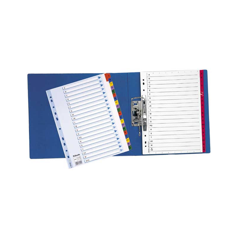 Separadores con multitaladro. Pestañas de colores intensos con refuerzo de cartulina. 31 posiciones en formato A4.