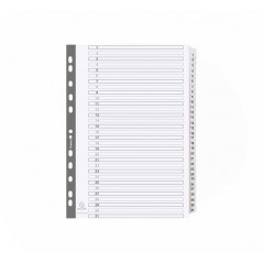 Separadores con multitaladro. Pestañas de colores intensos con refuerzo de cartulina. 31 posiciones en formato A4.