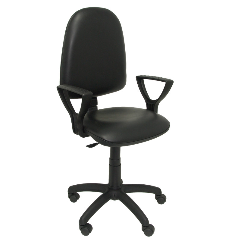 Silla de dirección con mecanismo basculante regulable en altura mediante pistón a gas. Respaldo ergonómico con tapizado con tejido símil piel y gran acolchado para el máximo confort. Asiento acolchado y apoyabrazos de polipropileno acolchados. Base de nylon reforzado. Estructura giratoria 360º de 5 radios y 5 ruedas de doble esfera sin freno, recomendada para todo tipo de suelos (duros y moqueta).